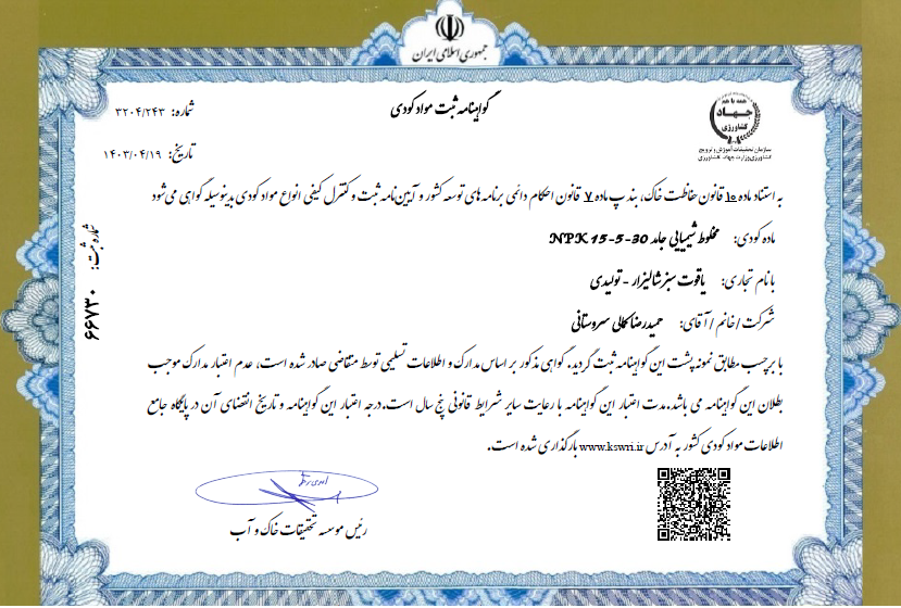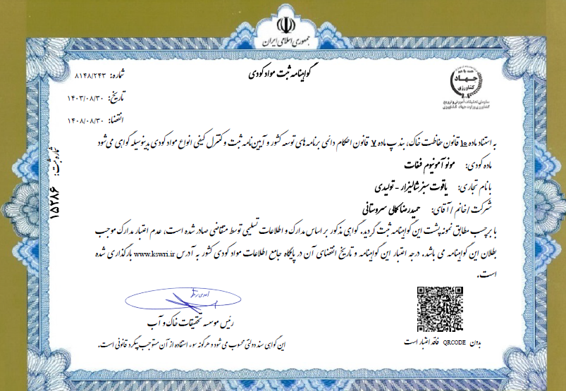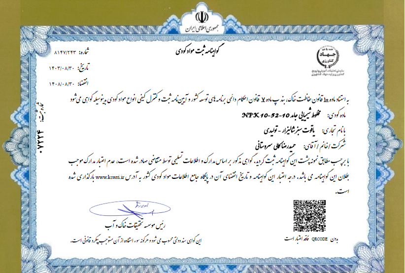 کود مونوآمونیوم فسفات به شماره ثبت کود: ۱۵۲۸۶