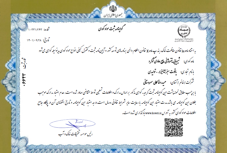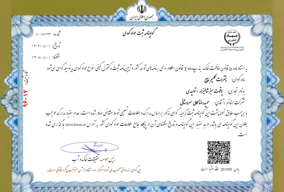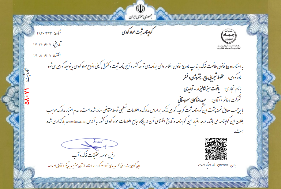 کود گوگرد مایع به شماره ثبت کود: ۴۲۷۶۷